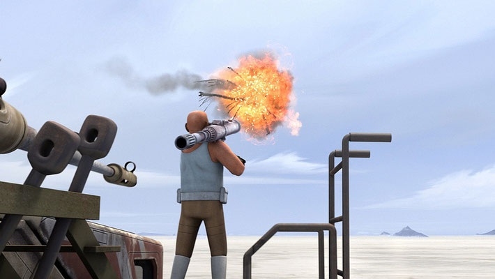 Gregor gelingt es allerdings den Jäger ohne Probleme mit einer Rakete vom Himmel zu holen. Ezra meint daraufhin, dass sie ein gutes Team bilden würden, wenn alle zusammenarbeiten.