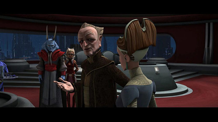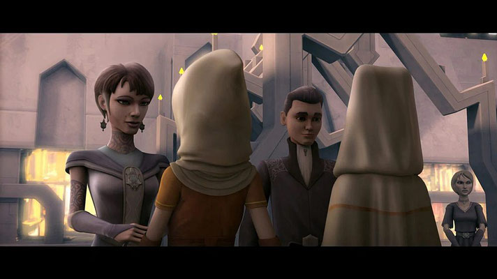 Padmé versucht Anakin zu bitten, den Hohen Rat der Jedi davon zu überzeugen, mit Kanzler Palpatine über die Verlängerung der Kriegsanstrengungen zu sprechen. Ahsoka versteht andererseits nicht, was die Verhandlung mit den Separatisten bringen würde, weil sie alle Kriegstreiber sind. Nachdem sich Anakin positiv über den Krieg geäußert hatte, entscheidet sich Padmé dafür, Ahsoka um Hilfe zu bitten.