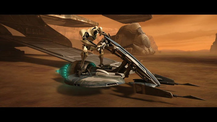 Grievous holt den Speeder Tank der Jünglinge ein und springt auf das Fahrzeug. Sofort greift Ahsoka ihn an. Huyang hat R2-D2 schütteln den Tank in einem verzweifelten Versuch Grievous abzuwerfen. Der Tank gerät außer Kontrolle und kracht auf den Wüstenboden. Grievous wurde aus dem Fahrzeug geschleudert.